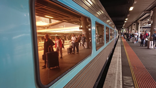 We pull into Southern Cross Station, still Spencer Street to me, about 50 minutes late. It's still early for the city. The homeless trudge around on the streets, passed by bleary eyed visitors from elsewhere.