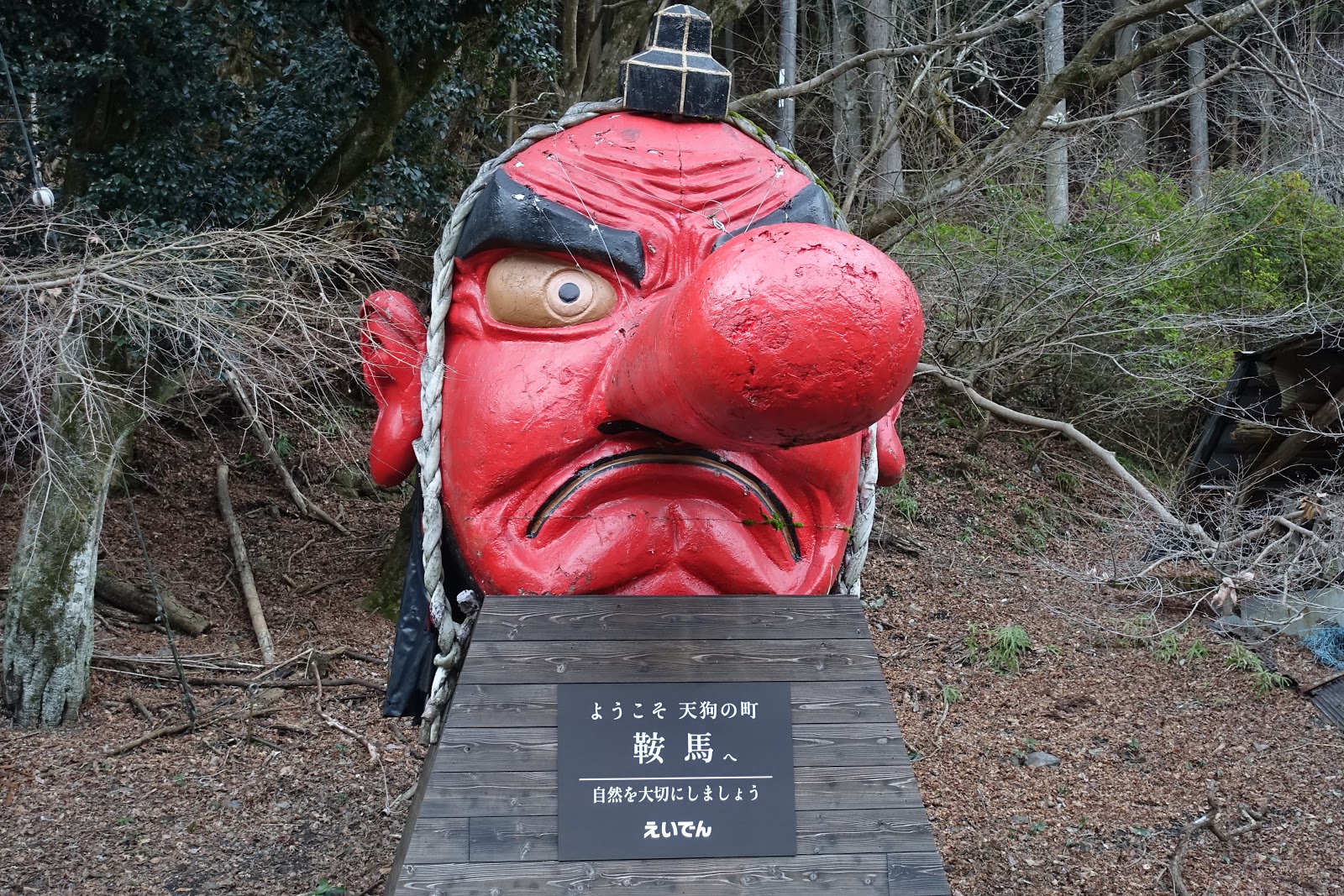 Then back down to the station, posing in front of the long-nosed tengu head, before catching the train back to Demachiyanagi.