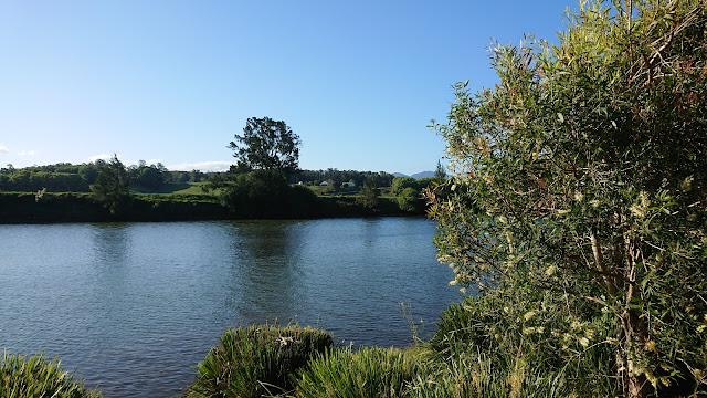 We hire a two person and single kayak for an hour's paddle into the Bellinger River. Initially it's B and Alex in the twin kayak, but they can't work out how to paddle, so I swap with Alex. He eventually gets the hang of it, but I have to do all the work in our boat. Amazing how it comes back to you.