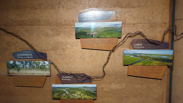 The quantity of information is overwhelming, especially as explanations are both in English and Gun-djeyhmi, the language of the Mirarr Kundjeyhmi clan in which region the Bowali Centre is located. There are around major seven major types of habitat: The stone country monsoon forests, savannah woodlands, billabongs, southern ridgelands, floodplains and coastal areas. Each has its own wildlife and flora and provides for the Indigenous inhabitants in a different way. They also recognise six seasons. I like the current one best: Banggereng, the knock 'em flat storm season.