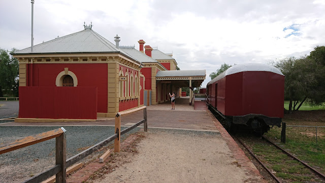 We reached Hay before 5pm and, after checking into our motel, took a drive up the main street, across the Murrumbidgee, and past shops closed for the day. The railway to Hay closed long ago, but the station is beautifully preserved and features a small museum about the European and Japanese interned outside of the town during the Second World War.